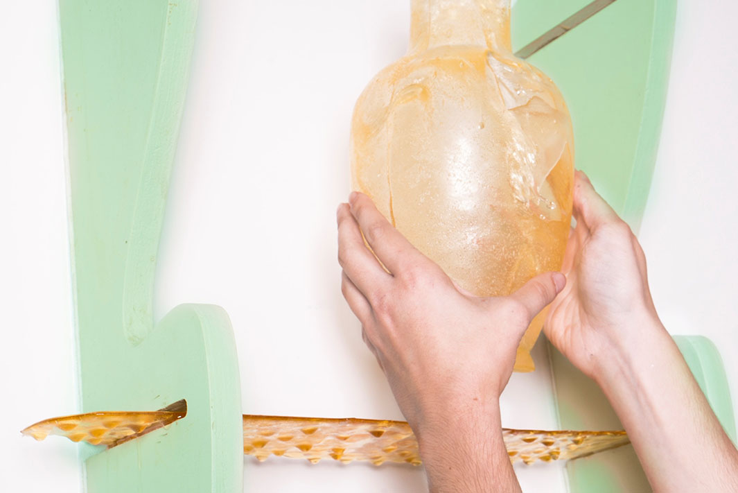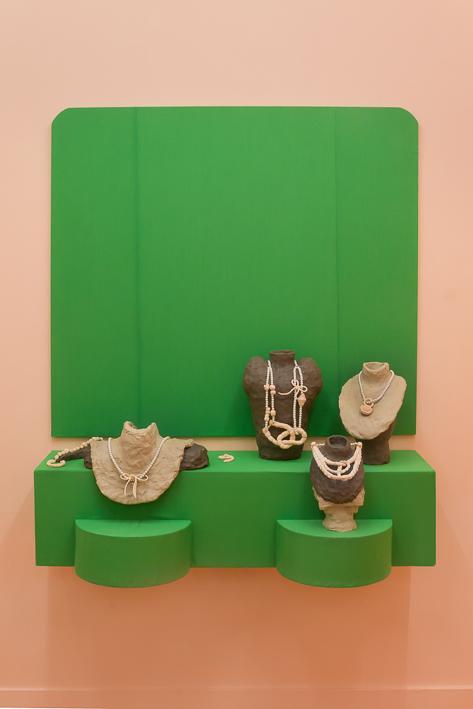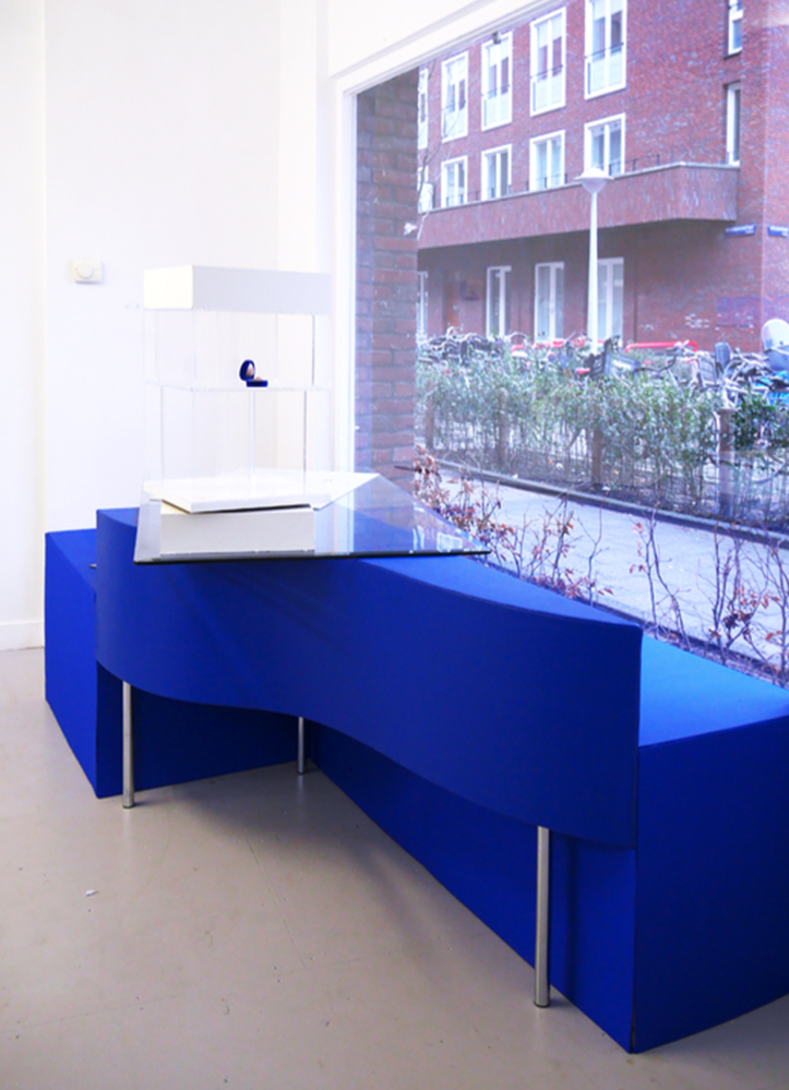 This playful sound installation subverts the classic jewelry store window display, offering a critical lens on the commercialization of romance in consumer and pop culture. Jewelry, often marketed as symbols of love, conceals a historic association with ownership as well as class and gender roles. A looped sound piece accompanies the exhibition, featuring Marilyn Monroe’s sequence of “No no nos” from her performance in Diamonds Are a Girl’s Best Friend. In jewelry stores, podiums and displays for merchandise often resemble fragmented body parts. By emphasizing and fetichising on these forms, the installation highlights the tension between romance and violence. Riso printed text by Joshua Roginsky Zoete Broodjes, Amsterdam (NL), 2016. Amsterdam artweek, Amsterdam (NL) 2016.