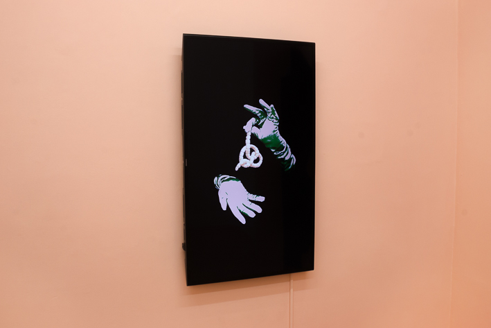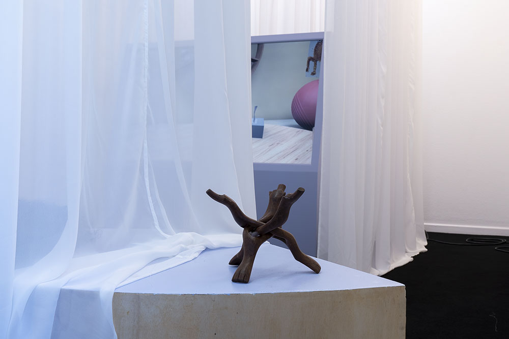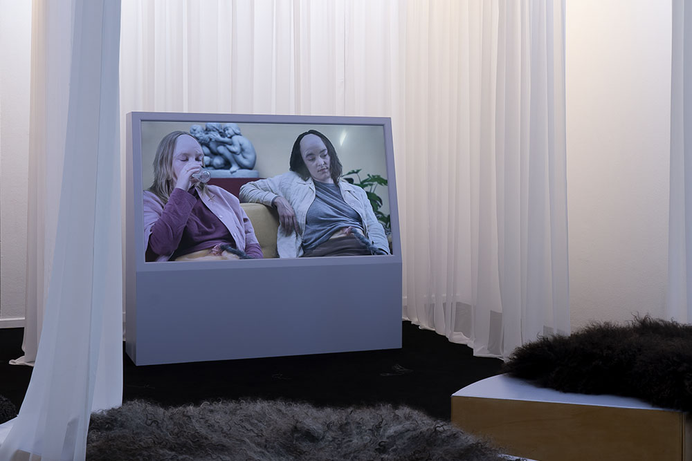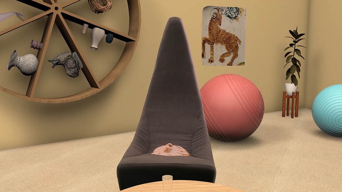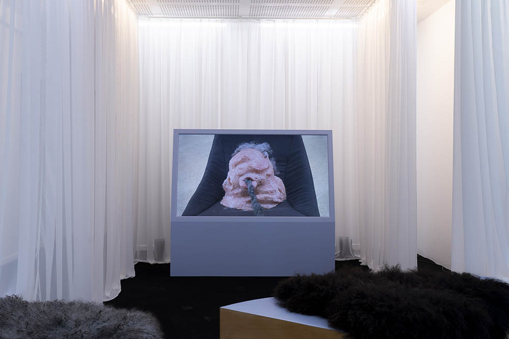 In String Therapy you join a therapy session between three characters placed in a rotating 3d animated room. As the conversation progresses, the three characters spin a physical thread that strengthens the connection between the three of them and the viewer. The dialogue in the film is developed after real life sessions with a couples therapist and then adapted to its current form. String Therapies overarching theme is relationships—the networks we build and the connections we forge. At the same time, it acknowledges the existential challenges of creating and maintaining transformative bonds. In the exhibition, the hyper-personal meets the hyperbolic in a visually dissonant collision between analog DIY special effects and the digital, virtual world of 3D. These two expressions mirror one another, becoming mutually representative as they morph, transform, and evolve. The works weave together strands from mythology, scientific string theory and computer programming. The visual contrasts make us conscious of the fleeting nature of both the human body and programmable technology, while highlighting their shared structures and interdependence. The work has been shown both within a larger installation and screened as an independent videowork. Rudolph Tegners Museum og samling, Dronningmølle (DK), Summer 2022, Udstillingsstedet Sydhavn Station, Copenhagen (DK), January 2023, Screening of String Therapy at CPH:DOX 2023, Copenhagen, (DK), march 2023 Screening of String Therapy at Onion City Film Festival, Chicago (US), April 2023 Kindly supported by the Danish arts foundation and Københavns kommunes billedkunstråd. Documentation by Rine Rodin
