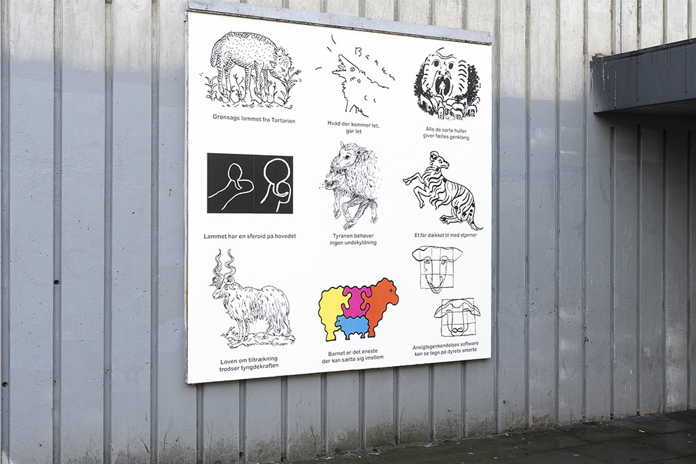 Far får får? Nej får får ikke får får får lam / Baa, baa, black sheep, have you any wool? Yes, sir, yes, sir, three bags full One for the master, one for the dame One for the little boy who lives down the lane Baa, baa, black sheep, have you any wool? Yes, sir, yes, sir, three bags full Kill the Curator, Group show, Oslo Kunsthall, Oslo (NO), 2021. Sommerudstillingen, Masnedø Fort, Vordingborg (DK), 2022 Udstillingsstedet Sydhavn Station, Copenhagen (DK), 2023
