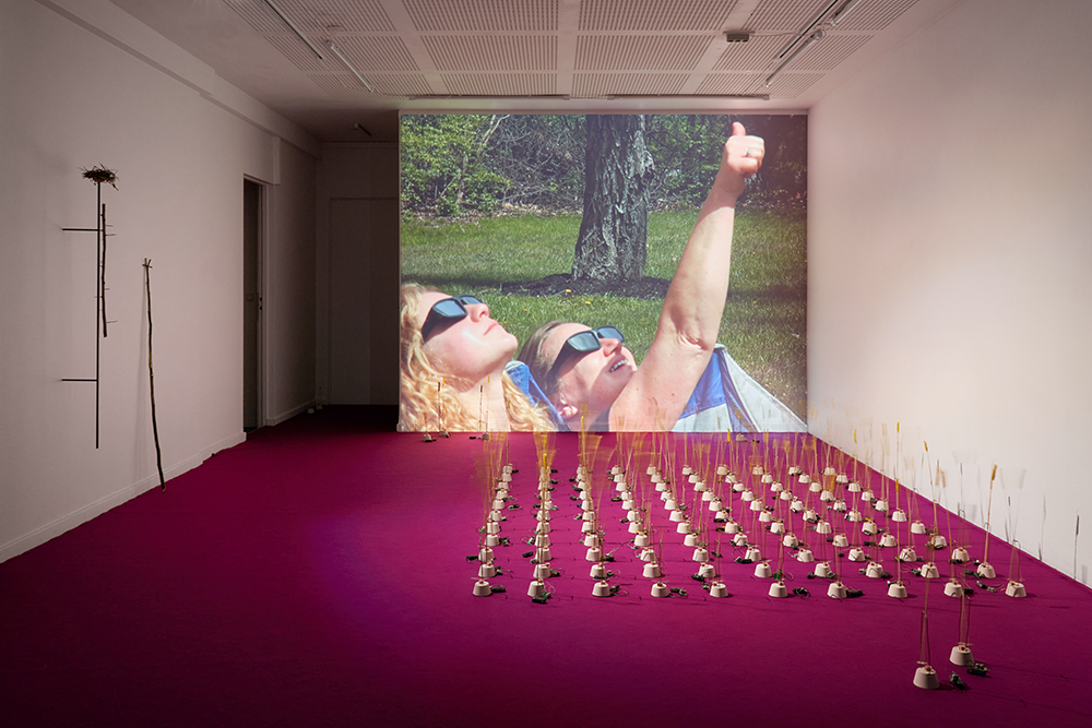 Hunter Gatherers invites seven artists to offer different perspectives on humans as herd animals, in a modern world characterized by loneliness and longing for connection with the surrounding world. Based on the experience of the total solar eclipse in 2017 and 2024, Considered to be Allies, have created a new video work and invited 5 other artists to a joint dialogue centered on collectivity and interconnectedness. Humans as herd animals are central to the exhibition, which invites collective reflection through performances, workshops and in the experience of the exhibition's individual works. Participating artists: Coley Mixan (US), Nicky Ulrich-Sparre (DK), Ida Schrader (DK), Maria Lepistö (SE), Nickie Sigurdsson (DK) and the artist duo Considered to be Allies: Mie Frederikke Fischer (DK) and Margaux Parillaud (FR). Hunters and Gatherers — Group Show at Udstillingsstedet Sydhavn Station, Copenhagen, 2024 Kindly supported by The Danish Arts Foundation, Rådet for Visuel Kunst and Ny Carlsberg foundationt. Posters and billboard sponsored by Aage og Johanne Louise-Hansen fonden Documentation by Brian Kure